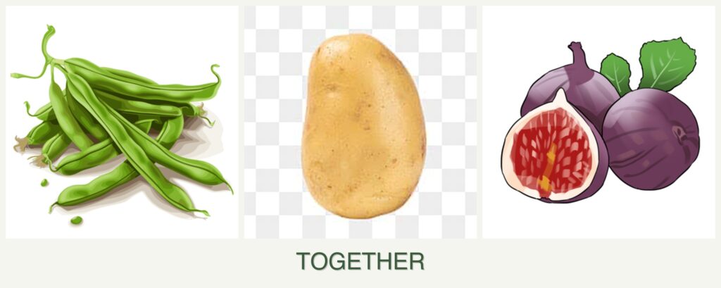 - Timing: Plant beans and potatoes after the last frost, while figs should be planted in early spring.