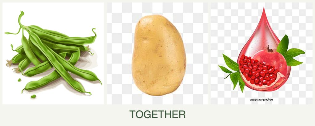 Nutrient Needs: Beans enrich soil nitrogen, which might not benefit potatoes. Pomegranates have different nutrient needs altogether.