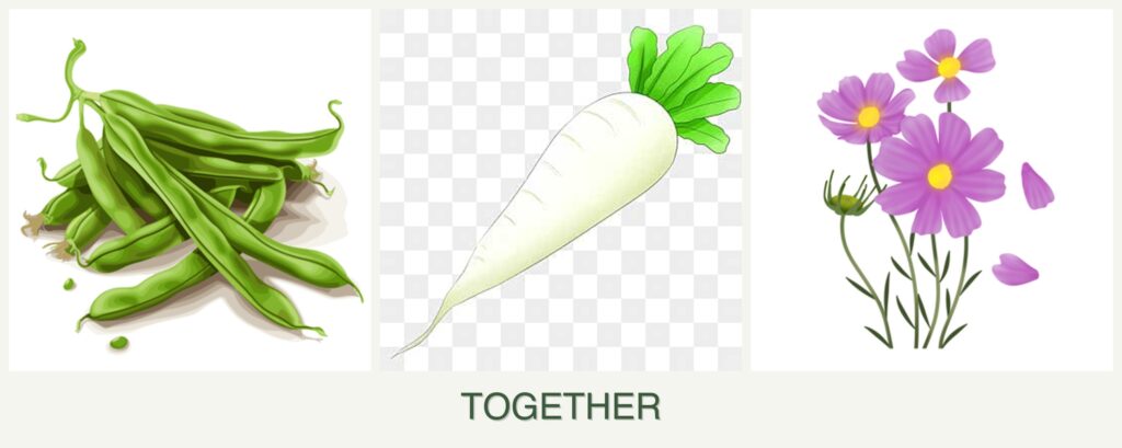Can you plant beans, radishes and cosmos together?