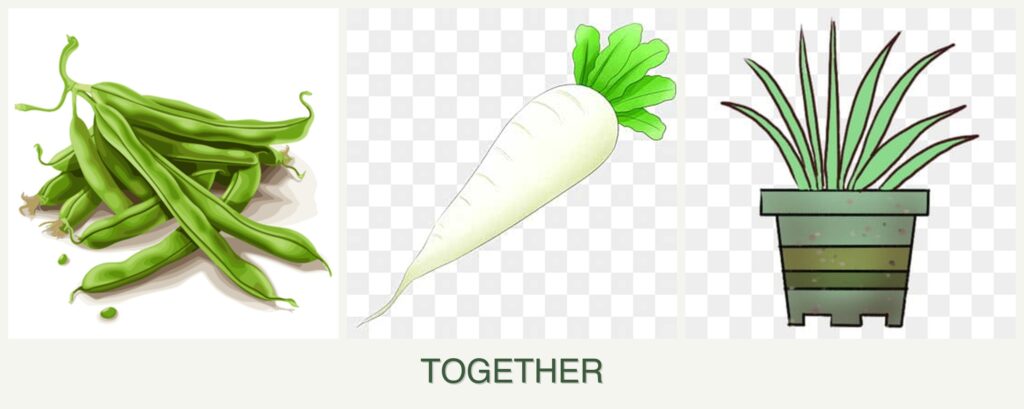 - Nutrient Needs: Beans enrich the soil with nitrogen, which benefits radishes and lemongrass.
