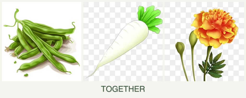 Yes, you can plant beans, radishes, and marigolds together, and they can complement each other well. Here’s why: