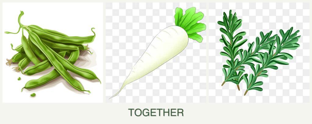 While beans and radishes can be beneficial companions, adding rosemary to the mix doesn’t enhance these benefits. However, beans and radishes can: