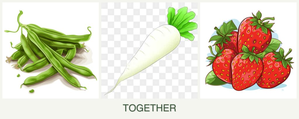 - Pest Control: Radishes can repel certain pests that might otherwise target beans and strawberries.