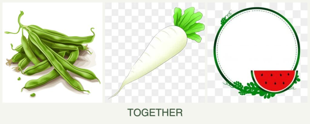 Planting beans, radishes, and watermelons together can offer several advantages: