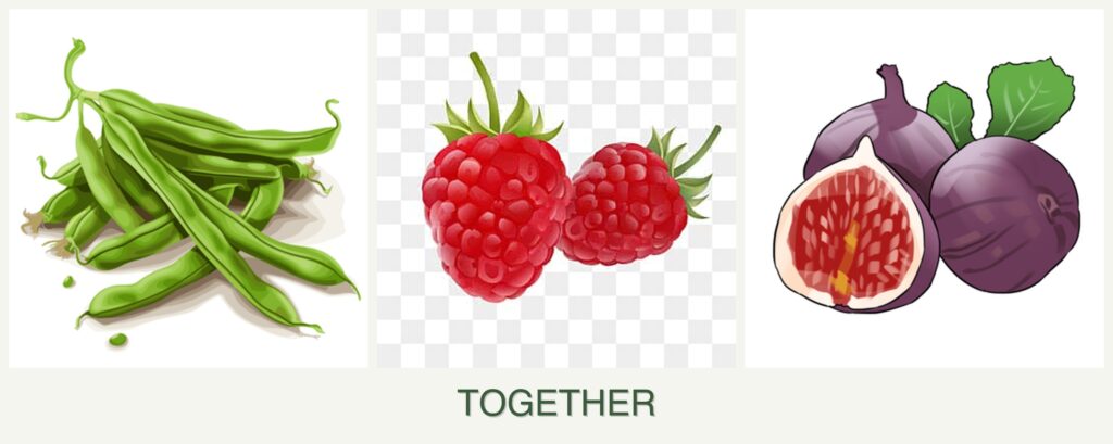 - Growth Requirements: Beans are nitrogen-fixers and can enrich the soil, benefiting raspberries and figs. Raspberries and figs both prefer well-drained soil, making them compatible in terms of soil type.