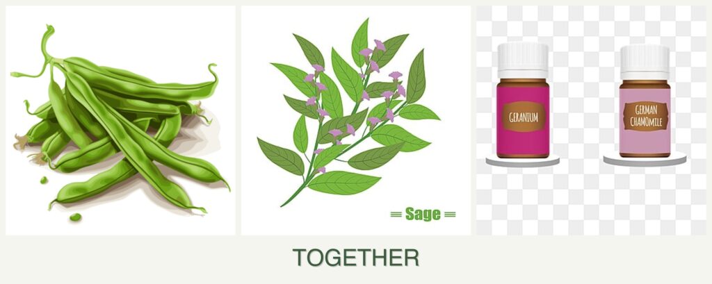 - Pest Control: Geraniums can repel common bean pests, while sage’s aromatic leaves deter many insects.