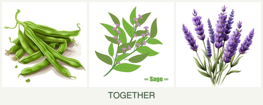 - Nutrient Needs: Beans enrich the soil with nitrogen, benefiting sage and lavender.
