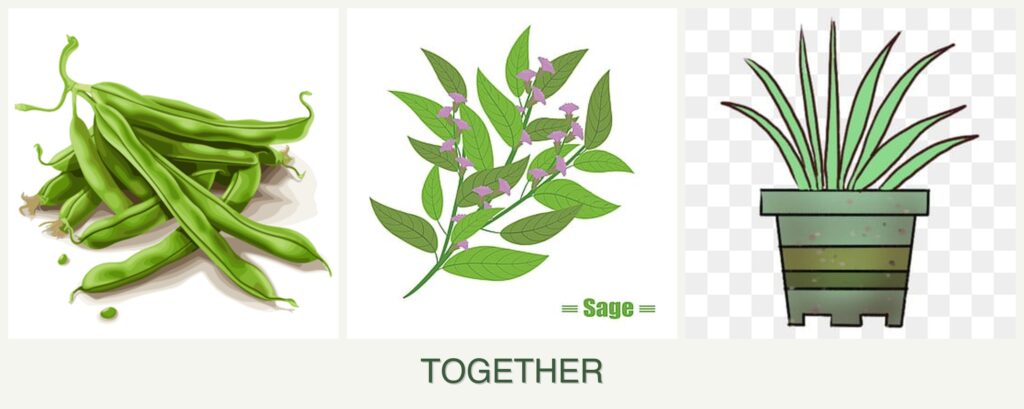 Beans and Sage: Sage is known to repel certain pests that may affect beans, such as bean beetles. Additionally, sage doesn’t compete with beans for nutrients, making them a compatible pair.
