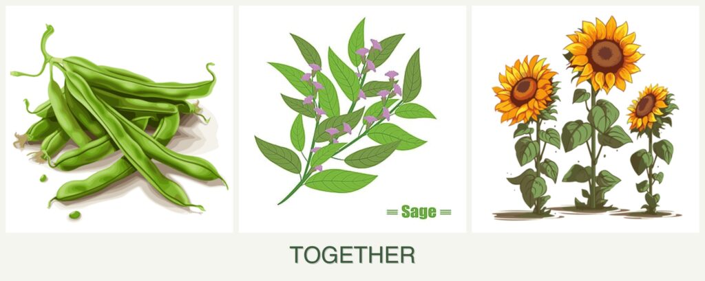 Planting beans, sage, and sunflowers together can offer several advantages: