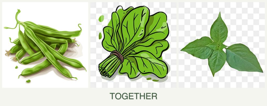 - Soil Health Benefits: Beans improve soil nitrogen levels, benefiting spinach and basil.
