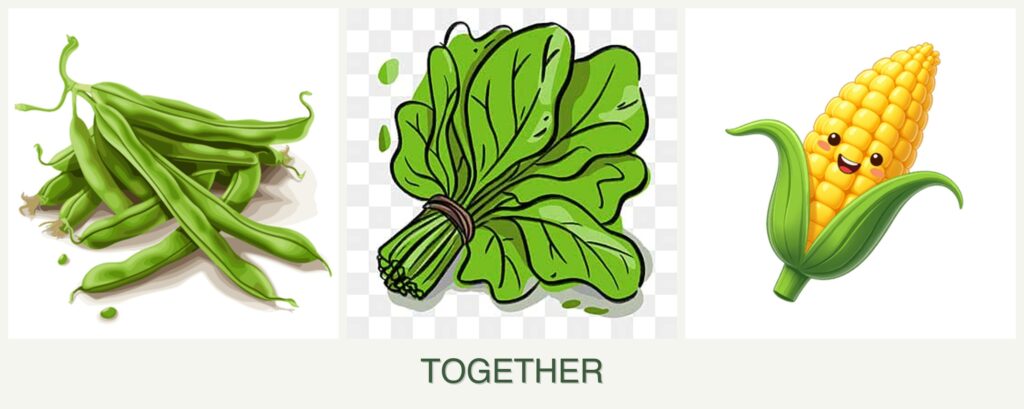 Growth Requirements: Corn grows tall and provides natural support for climbing beans. Beans, in turn, fix nitrogen in the soil, which benefits both corn and spinach. Spinach grows low to the ground, utilizing the space beneath the taller plants without competing for sunlight.