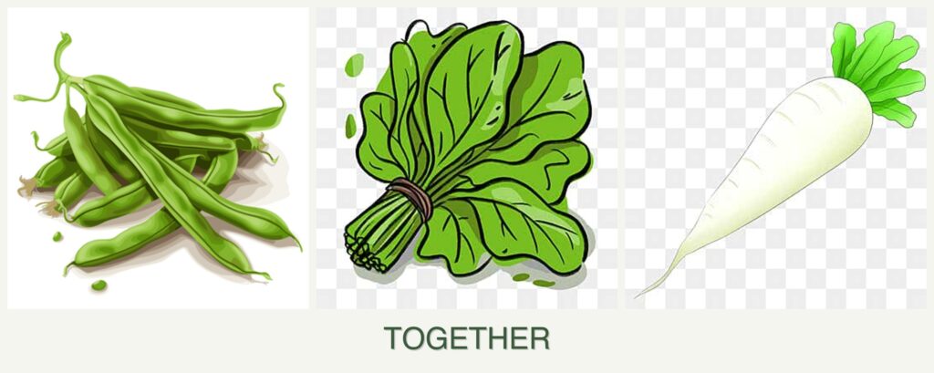 - Pest Repellent Properties: Radishes can repel certain pests, protecting beans and spinach.