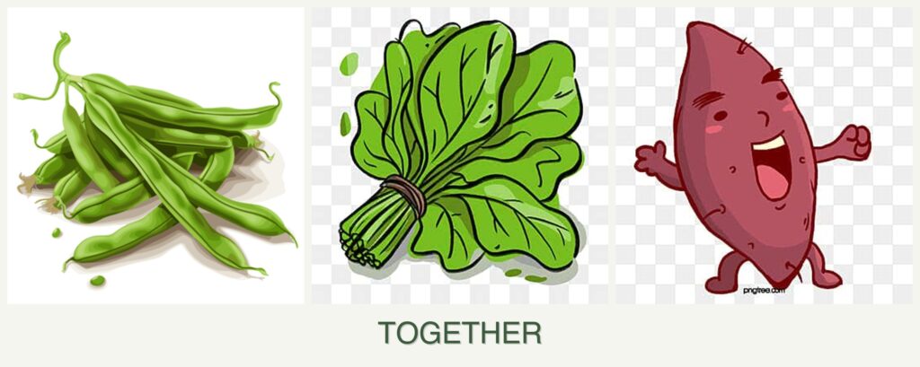- Improved Flavor or Growth: The nitrogen-fixing ability of beans can enhance the growth of spinach and sweet potatoes.