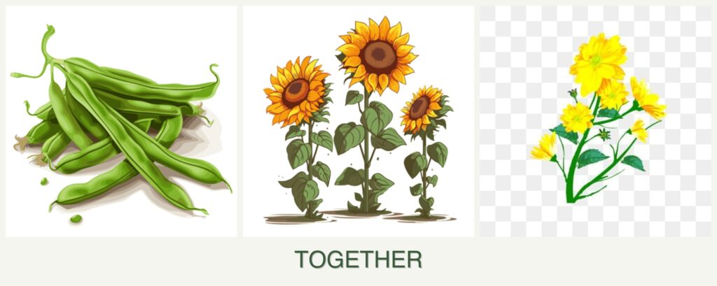 Improved Growth: Beans enrich the soil with nitrogen, benefiting sunflowers and calendula.
