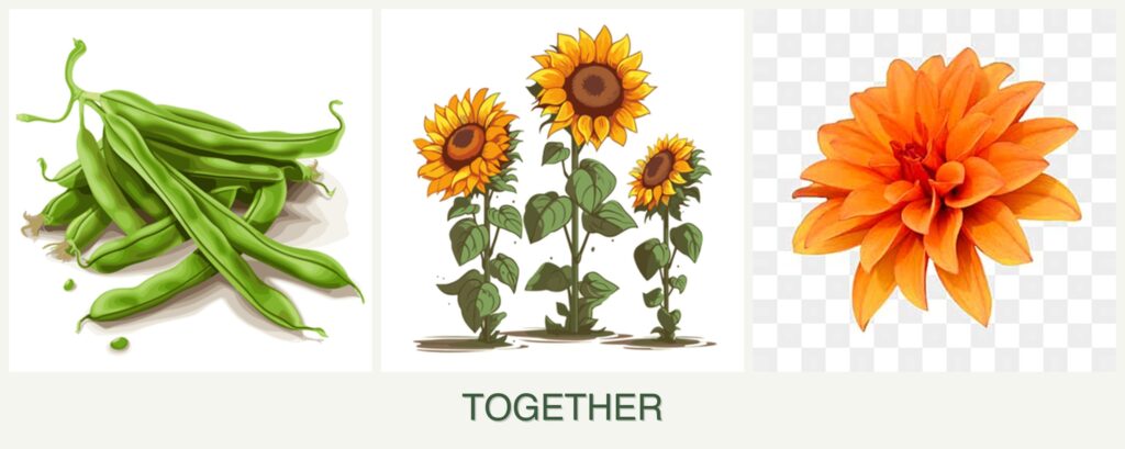 - Nutrient Needs: Beans fix nitrogen in the soil, which can benefit sunflowers and dahlias.