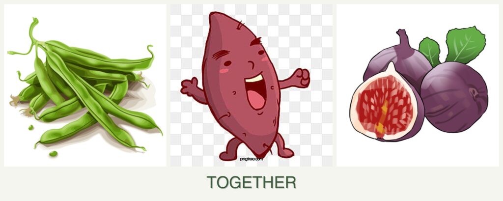 Pest Control: Beans can help deter certain pests that might affect sweet potatoes, such as beetles. However, figs are less susceptible to these pests, making them a neutral presence in this trio.