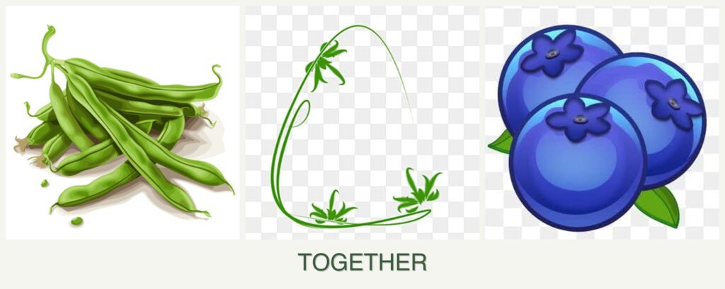 Nutrient Needs and Spacing: Beans are nitrogen-fixers, which can benefit many plants, but blueberries have specific nutrient needs and prefer a different soil composition. Spacing requirements also differ, with blueberries needing more room to spread.