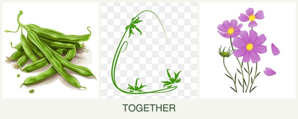 - Improved Growth: Beans enrich the soil with nitrogen, supporting the growth of cosmos and tarragon.