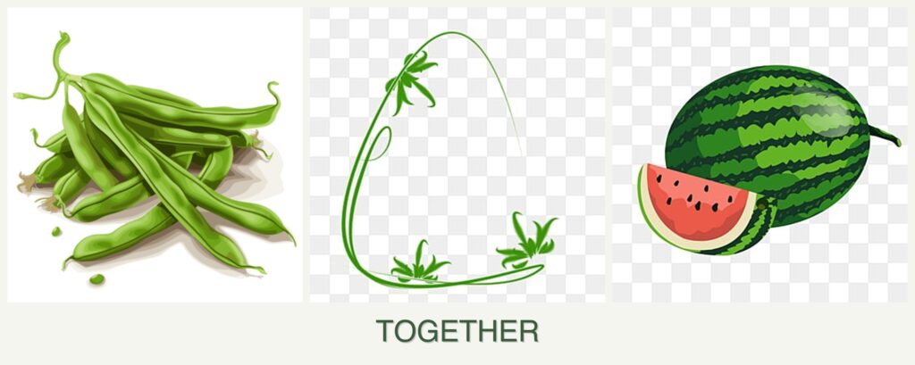 - Space Efficiency: Using vertical space for beans allows melons to spread on the ground.