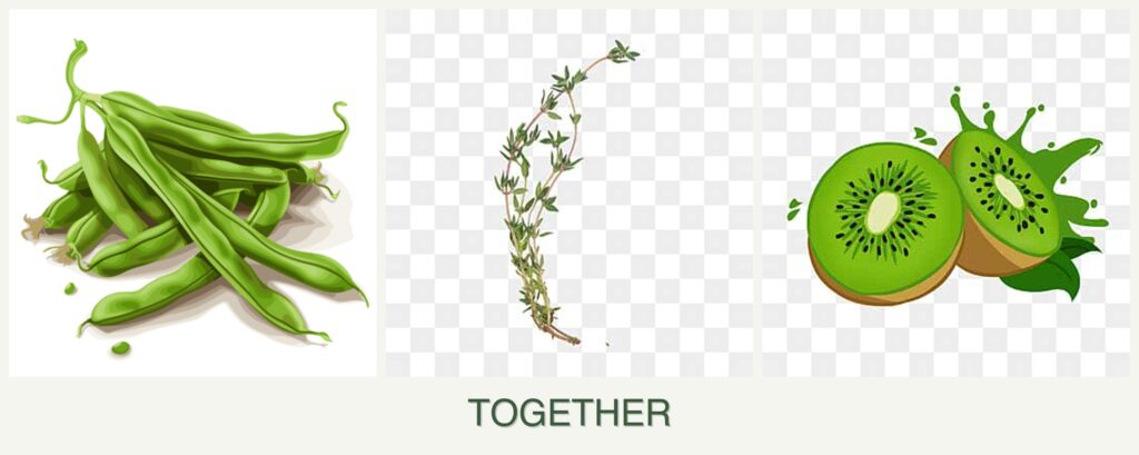 While beans, thyme, and kiwi may not be ideal companions, planting beans and thyme together can offer some benefits: