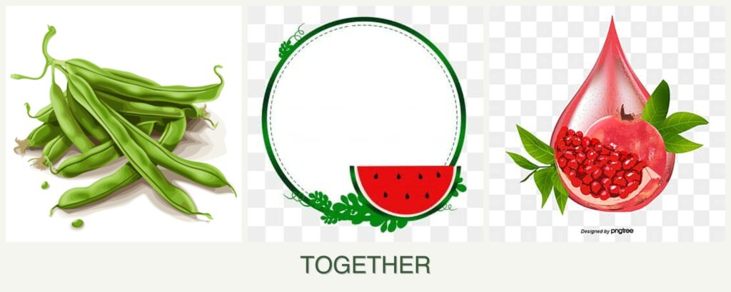 - Growth Requirements: Watermelons and pomegranates need full sun and well-drained soil, whereas beans prefer cooler conditions.