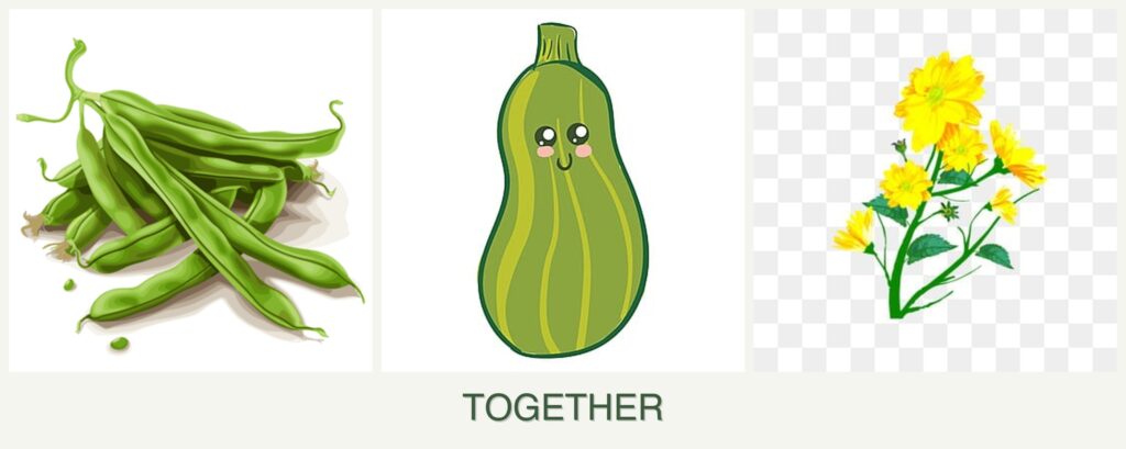 Can beans, zucchini, and calendula be planted together? Yes! These plants can thrive when grown together due to their complementary characteristics.