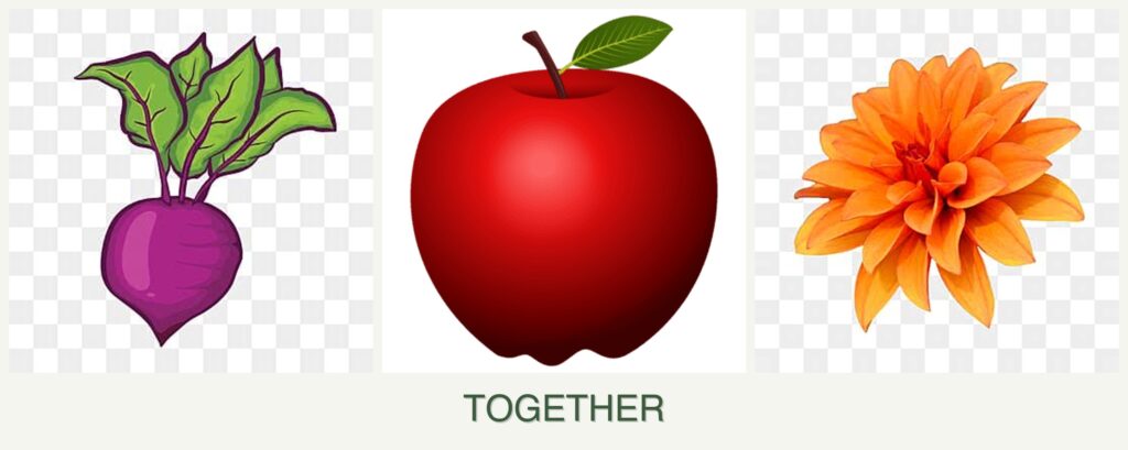 - Nutrient Needs: Beets are root vegetables that require different nutrients than apples and dahlias, reducing direct competition for resources.