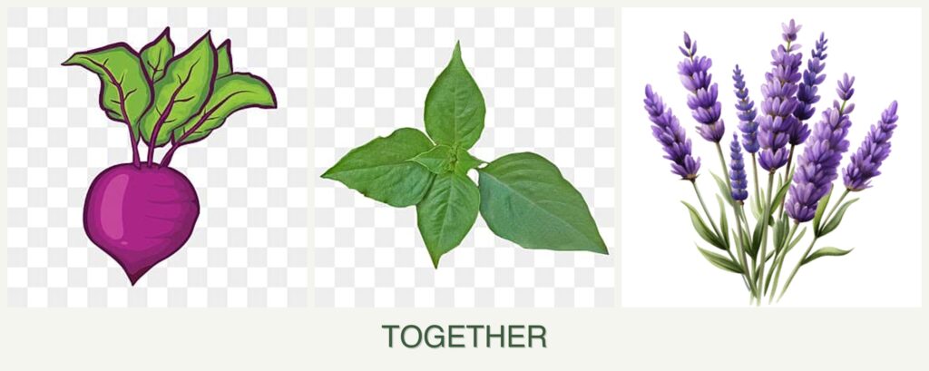 - Harvesting Considerations: Be mindful of disturbing lavender and basil when harvesting beets.