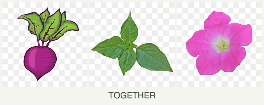 - Space Efficiency: These plants utilize different levels of the soil, with beets growing underground and basil and petunias above, maximizing space.
