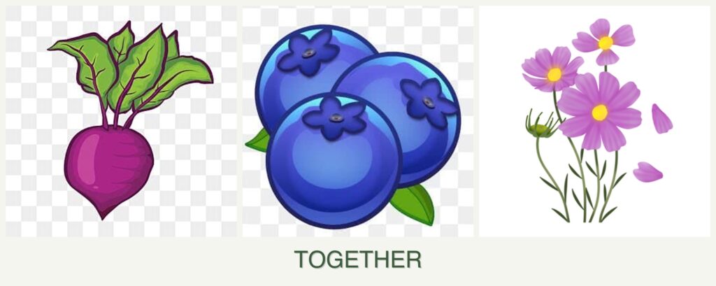 - Pest Control: While beets and cosmos can help deter some pests, blueberries are not significantly benefited by their presence.