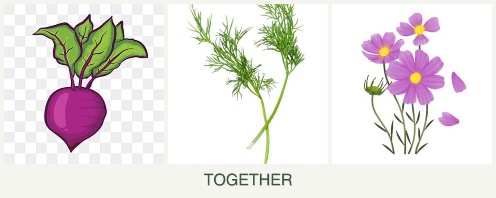 Planting beets, dill, and cosmos together offers several advantages: