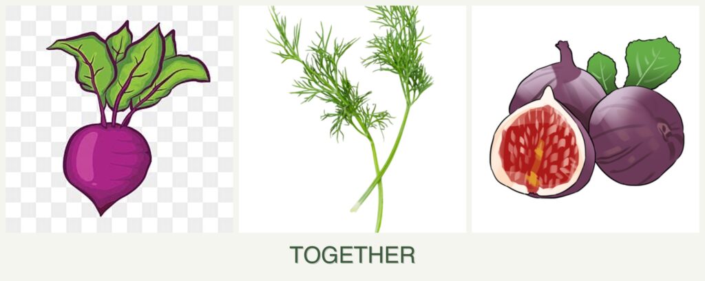- Growth Requirements: Beets and dill thrive in similar conditions, preferring well-drained soil and full sun. Figs, however, need more space and slightly different soil conditions.
