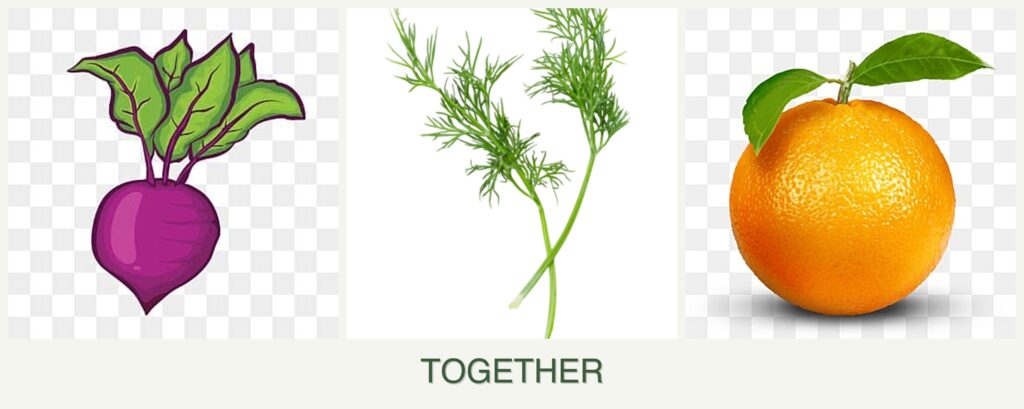 While beets and dill can be planted together, they are not ideal companions for oranges. However, when beets and dill are paired: