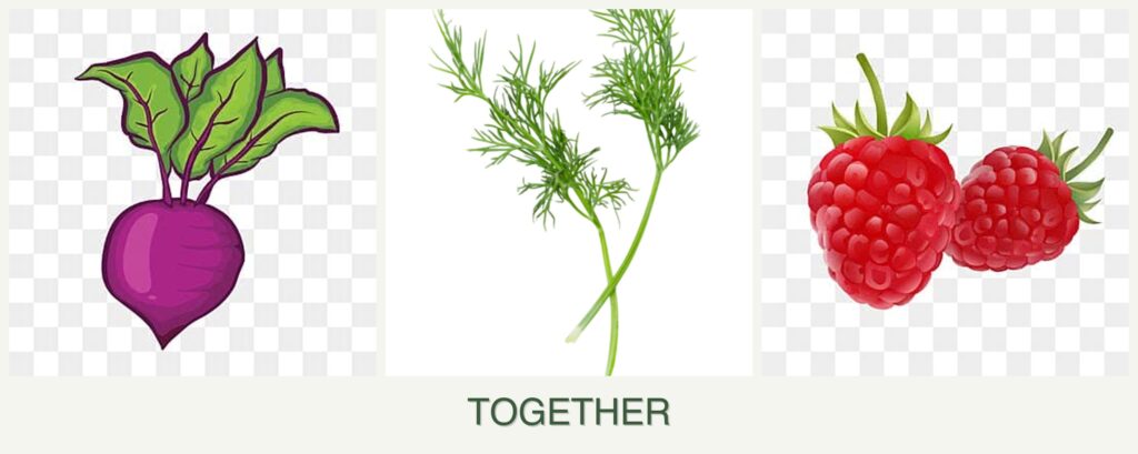 - Timing: Plant beets and dill in early spring, while raspberries are best planted in late winter or early spring.