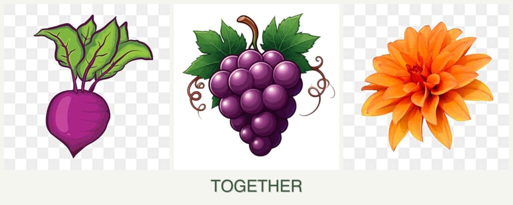 - Nutrient Needs: Beets are root vegetables that do not compete heavily for nutrients with the deeper-rooted grapes or the surface-feeding dahlias.
