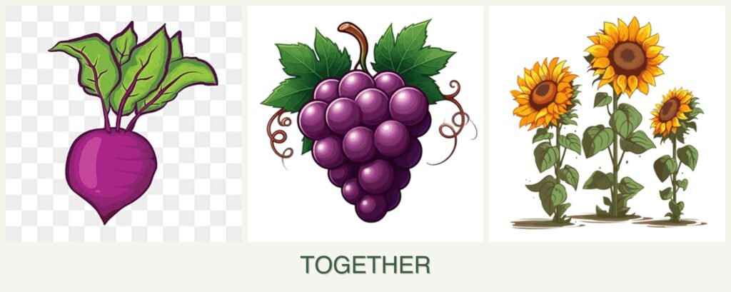 Planting beets, grapes, and sunflowers together can offer several advantages: