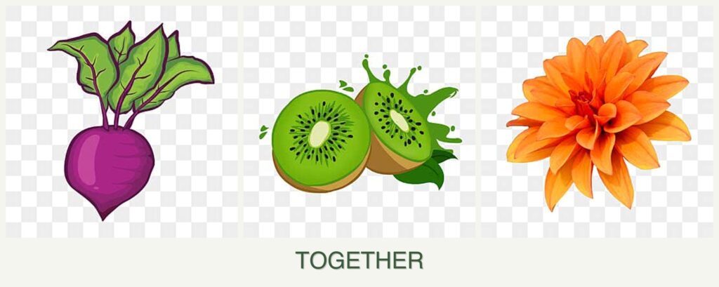 - Avoid planting kiwis with root vegetables like beets that require different care.
