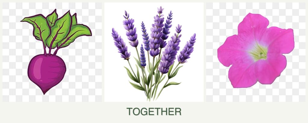 - Improved Growth: Lavender’s low nutrient and water needs reduce competition, allowing beets and petunias to thrive.