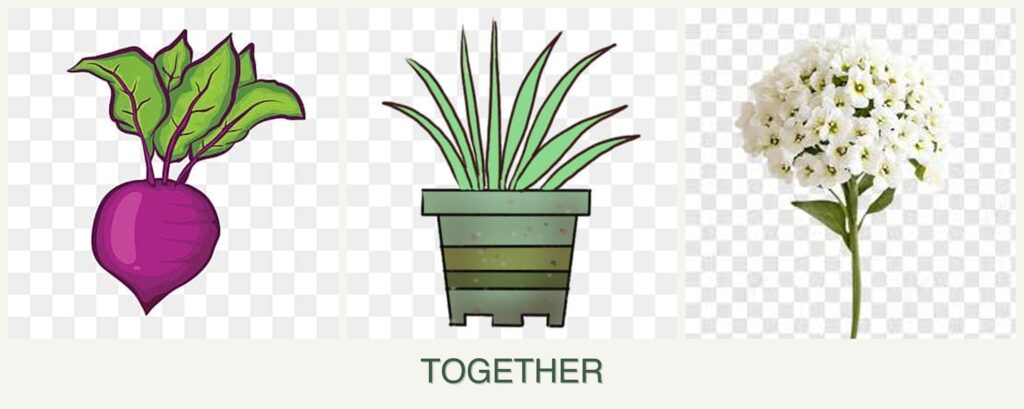 Nutrient Needs and Spacing: Beets are root crops that require good soil nutrients, while lemongrass is a heavy feeder. Alyssum is less demanding, making it a good filler plant that won’t compete heavily for resources. Proper spacing can help balance these needs.