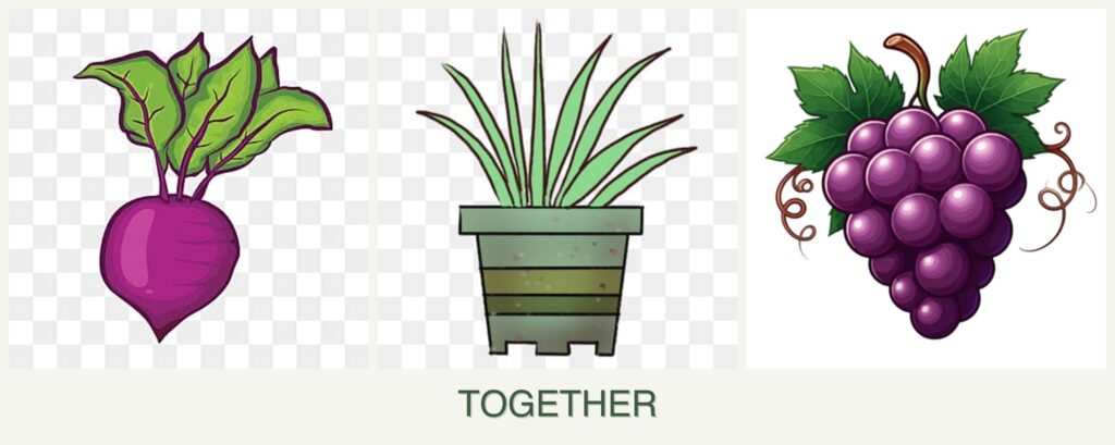 - Compatible Companions: Pair beets with onions and lettuce, lemongrass with basil, and grapes with beans.