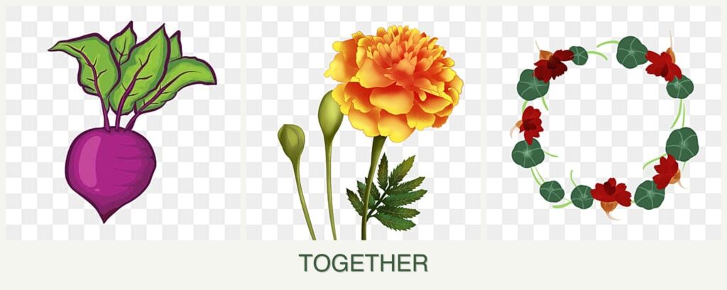 - Growth Requirements: All three plants prefer full sun and well-drained soil. Beets require consistent moisture, while marigolds and nasturtiums are more drought-tolerant.