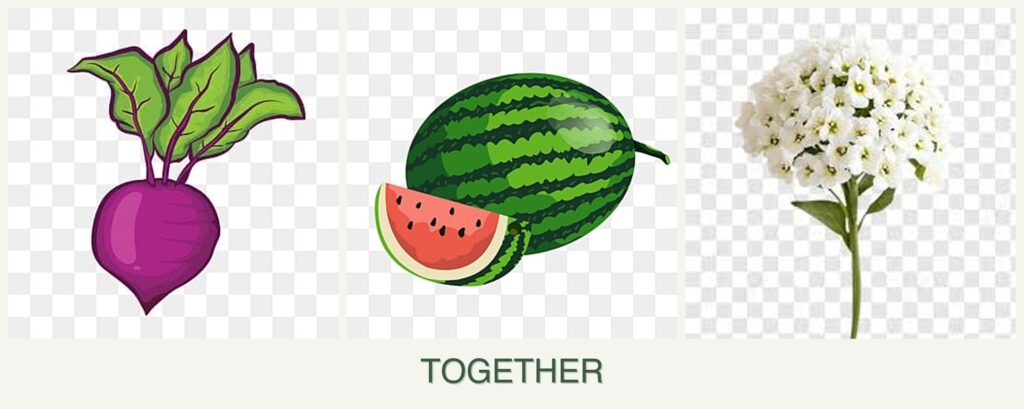 - Improved Growth: Alyssum’s ground cover helps retain soil moisture and prevent weeds, benefiting both beets and melons.