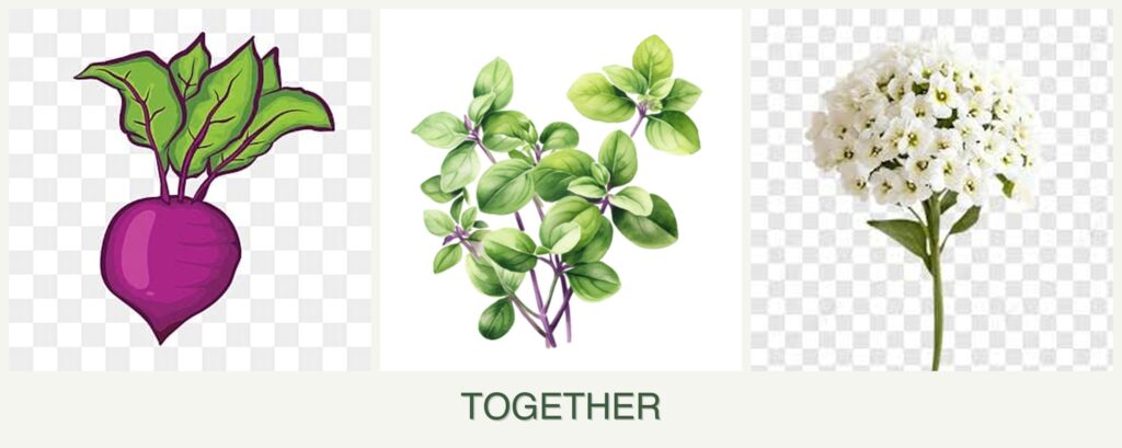 Planting beets, oregano, and alyssum together can offer several benefits: