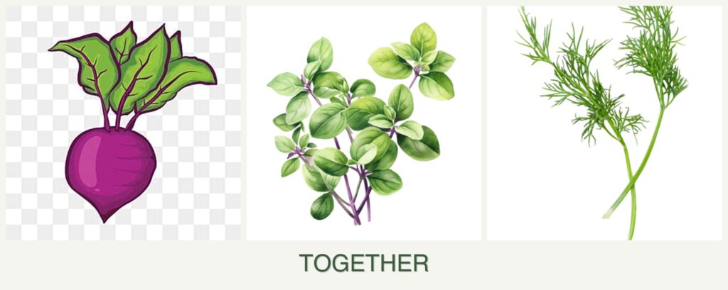 Planting beets, oregano, and dill together offers several benefits: