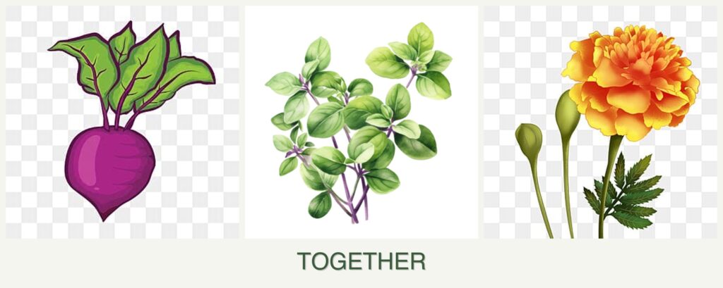 Planting beets, oregano, and marigolds together offers numerous benefits:
