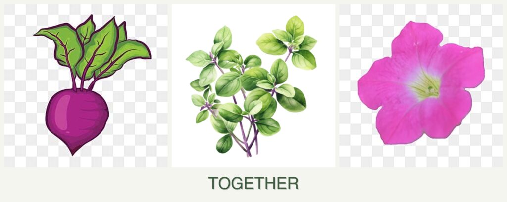 Growth Requirements: Beets prefer cooler weather and well-draining soil, while oregano thrives in warmer conditions and can tolerate drier soil. Petunias, known for their vibrant flowers, also enjoy full sun and well-drained soil. Despite these differences, they can coexist if planted with attention to their specific needs.
