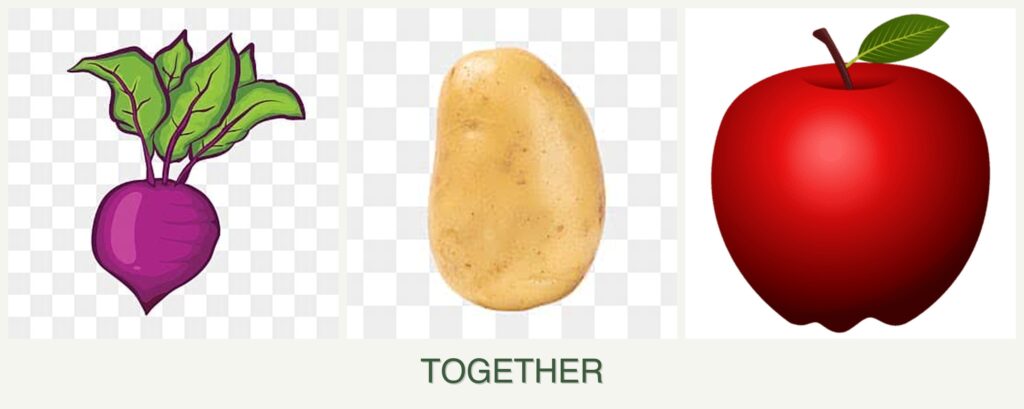 - Growth Requirements: Apples need full sun and well-drained soil, while beets and potatoes can tolerate partial shade but still prefer full sun.