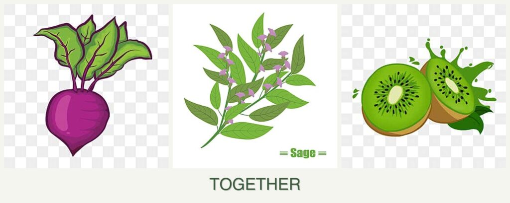 While beets, sage, and kiwi don’t work well as a trio, planting beets and sage together can be beneficial: