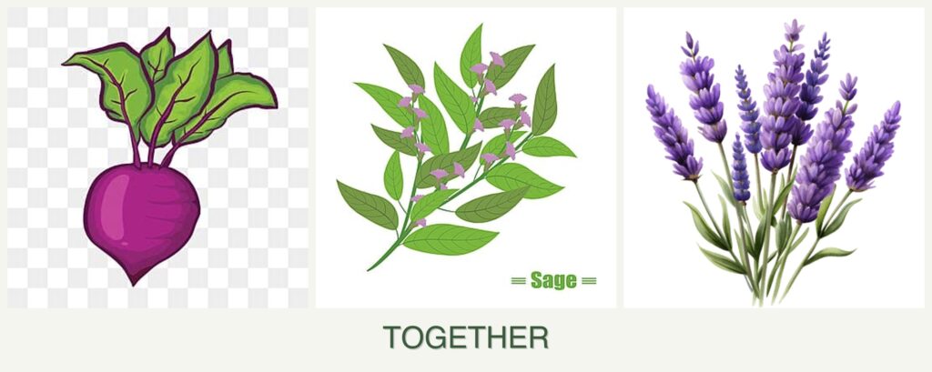 - Soil Health Benefits: Sage and lavender help improve soil structure and drainage, beneficial for beet roots.