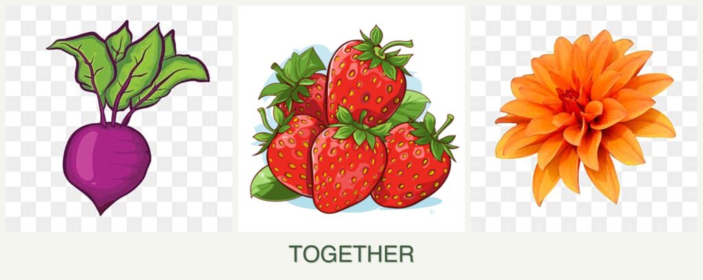 Improved Flavor and Growth: The presence of beets can enhance the flavor of strawberries, while dahlias attract pollinators, aiding in strawberry fruit production.